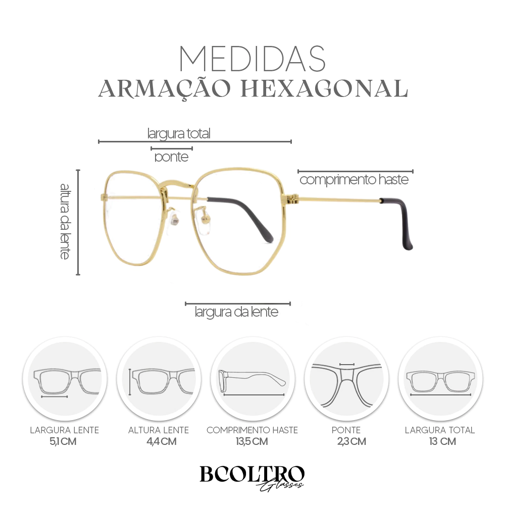 Óculos Armação Hexagonal Dourado – Estilo e Sofisticação em Cada Detalhe