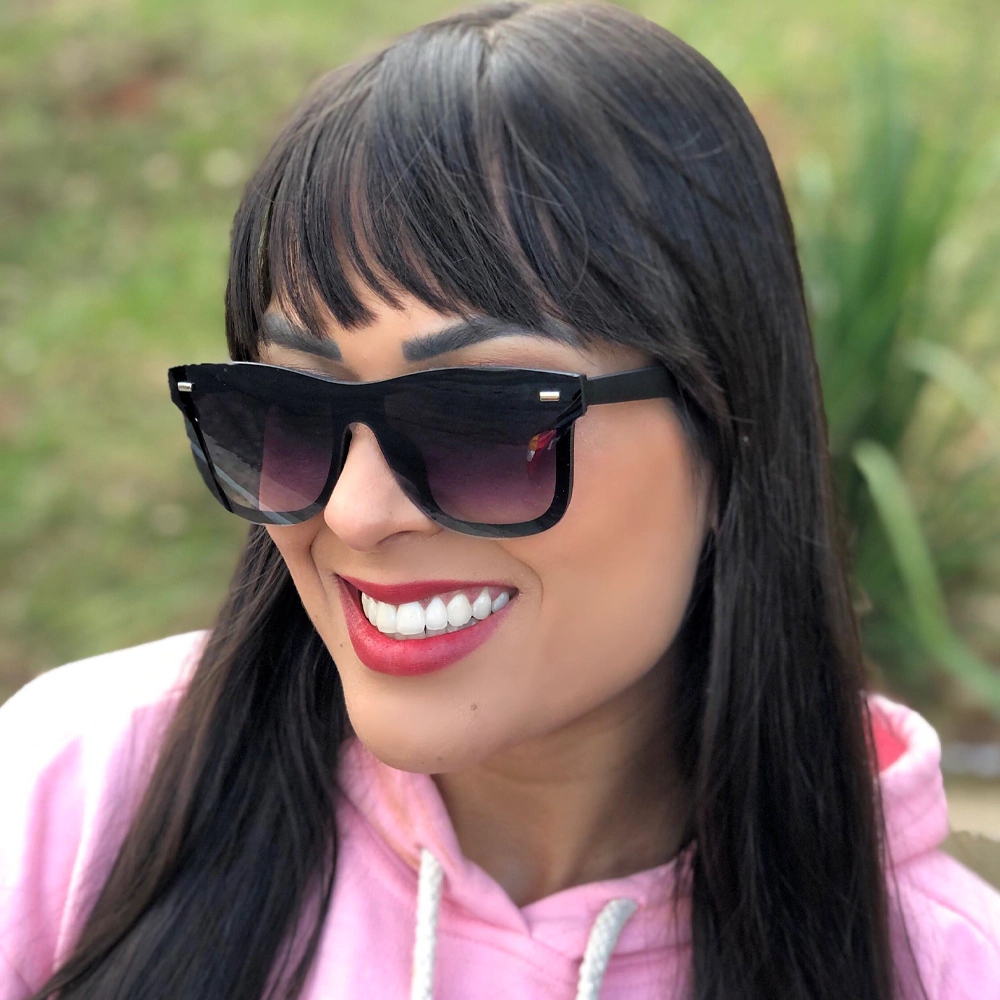O Óculos de Sol Angra Preto possui formato quadrado, perfeito para rosto pequeno e médio, 100% em acetato italiano na cor preto, lentes com bordas infinitas degradê na cor preta, combina com qualquer look.