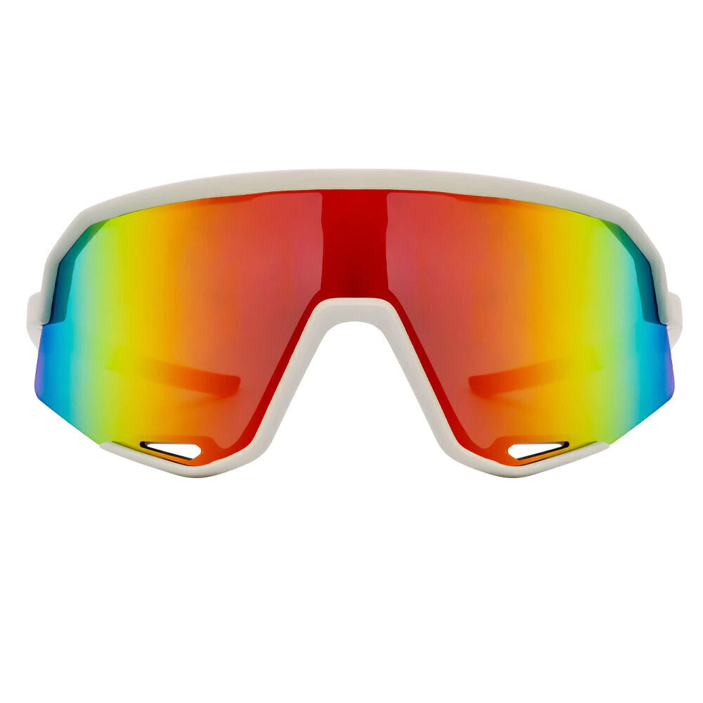 Óculos de Sol Aspen Branco Laranja Espelhado: modelo espertivo com design aerodinâmico, armação em acetato italiano na cor branco fosco com borrachas na cor preta e lentes inteiriças na cor laranja espelhado.