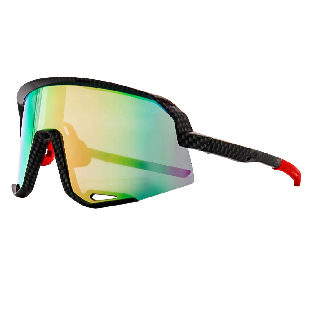 Óculos de Sol Aspen Carbono Rosa Espelhado: modelo espertivo com design aerodinâmico, armação em acetato italiano na estampa carbono com borrachas vermelhas e lentes inteiriças na cor rosa espelhado.