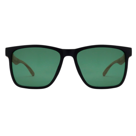 O Óculos de Sol Atlanta G15 confeccionado em acetato na cor preta, haste em acetato estampado de madeira clara com amortecedores internos. Lentes verdes com acabamento G15.