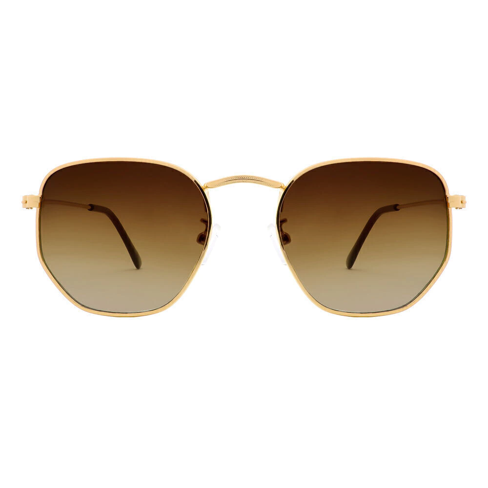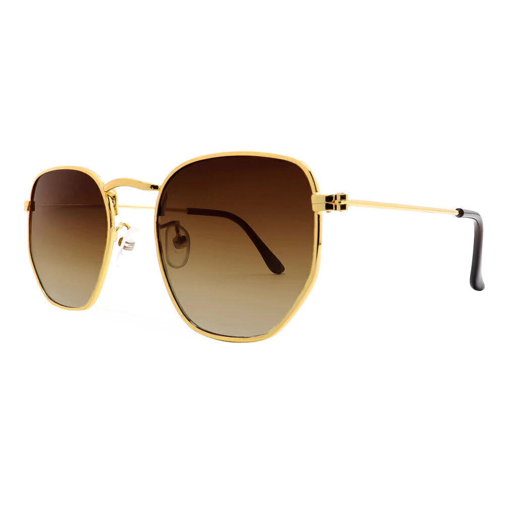 O Óculos de Sol Hexagonal Dourado e Café combina um design moderno e sofisticado, ideal para homens que valorizam um visual marcante e elegante. Sua armação em metal dourado oferece resistência e leveza, enquanto as ponteiras em acetato preto garantem conforto no uso diário. As lentes degradê marrom adicionam um toque de sofisticação e proteção contra os raios solares, tornando esse modelo perfeito para qualquer ocasião.